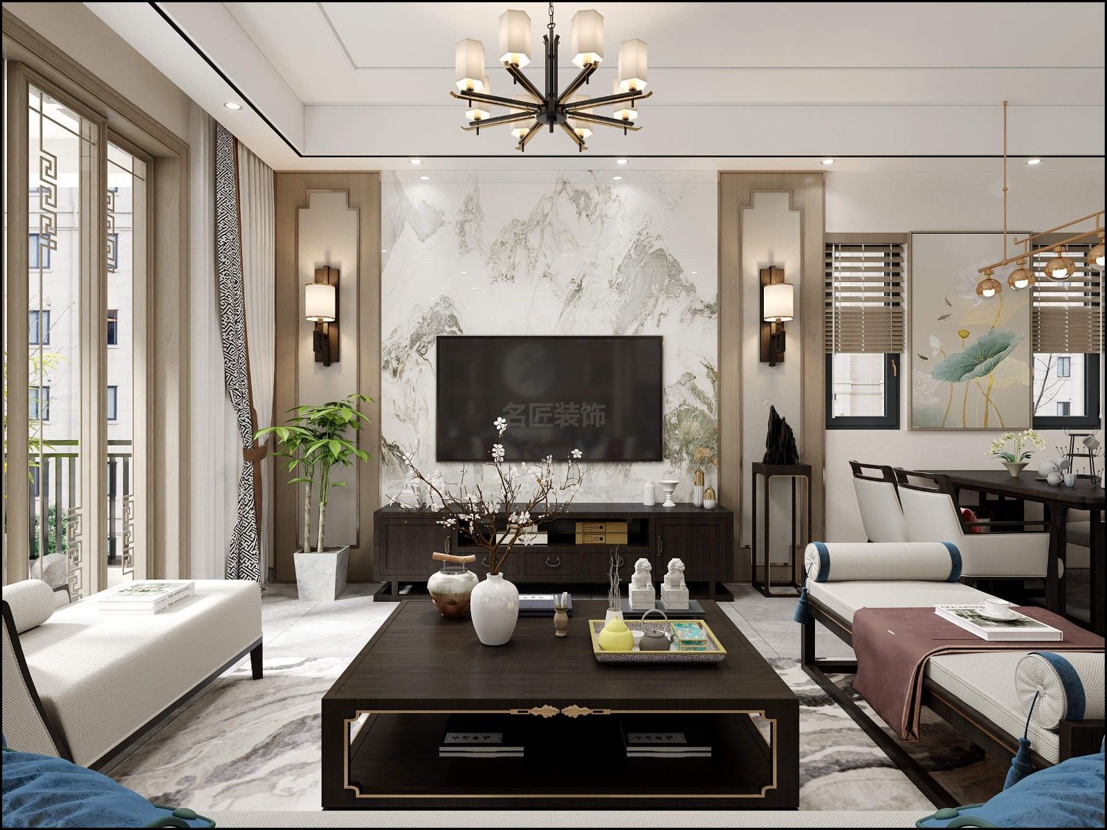惠州201-300平米新中式風格景安花園室內設計效果圖