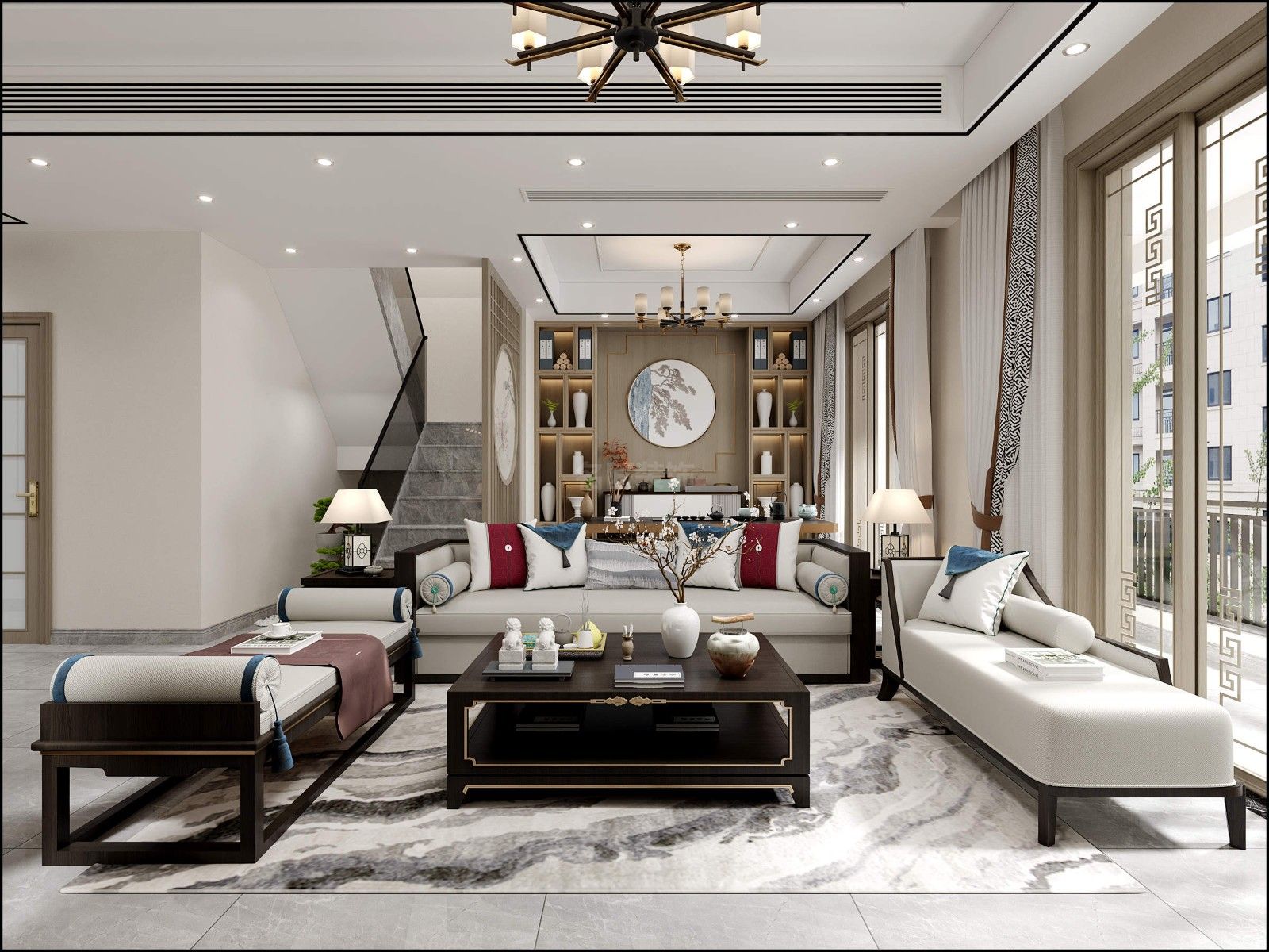 佛山金科博翠天下疊墅別墅新中式風格裝修效果圖